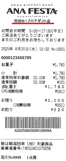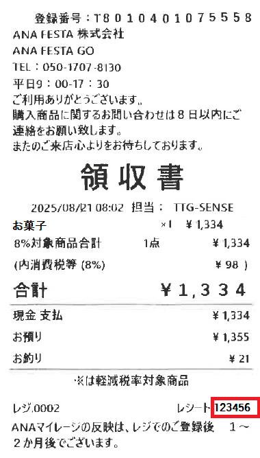 無人決済店舗「ANA FESTA GO」はレシートが異なります。